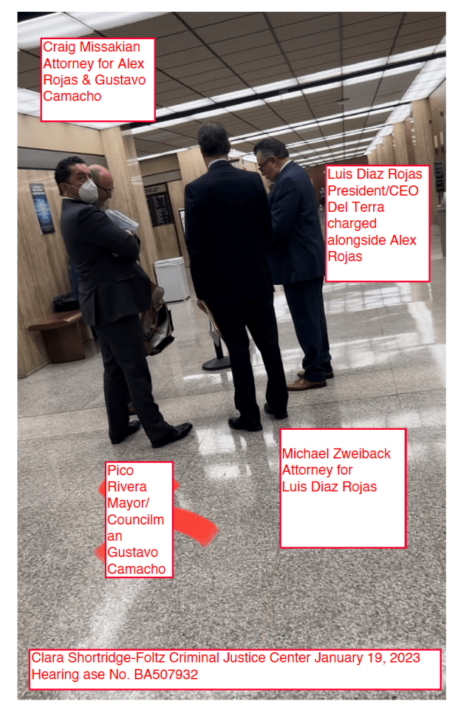 In the adjoining court room to Camacho, Alejandro “Alex” Rojas, is defending against 18 counts, including embezzlement, money laundering, and perjury, in relation to his previous work as Superintendent of Bassett Unified School District. These charges stem from Rojas’ funneling of almost two million dollars to Del Terra.